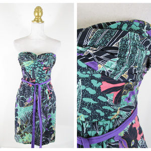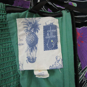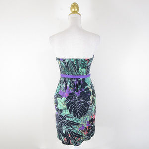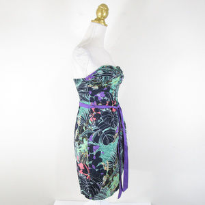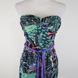 Beautiful Anthropologie Edme & Esyllte purple green floral botanical faux wrap strapless dress in excellent used condition. Comes with belt and extra bag of straps. Cotton blend. Fully lined. Size 0. Perfect for any occasion!