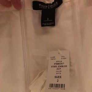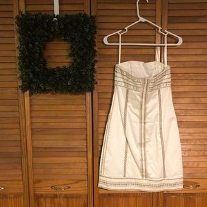 Absolutely stunning NWT WHBM strapless cream colored dress with amazing embroidery and small rhinestones! Lined with back zip and comes with narrow removable straps. Perfect for any occasion and a fabulous way to sexy up your summer!!