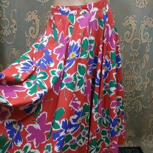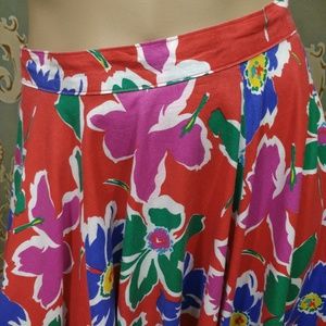 Vintage Floral Midi Full Swing Skirt Size S Colorful Retro Red Green