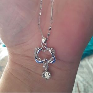 Elegant Dainty Sparkly Crystal & Sterling, amazing Double Heart’s intertwined...Pendant & Necklace, both Amazing!