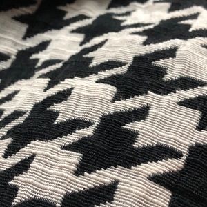 Ann Taylor Houndstooth patterned pencil skirt, women’s US size 2. Checkered black & white patterned houndstooth patterned pencil skirt. Slit at rear. Fully lined. Partial hidden zipper at rear with hook & eye enclosure at top. Mini to midi length (depending on height & dimensions- I’m 5’6” and his falls to lower-mid thigh/a couple inches above the knee). Textured knit fabric on shell. Excellent condition; new, never washed or worn. No damage, flaws, or signs of wear/use.