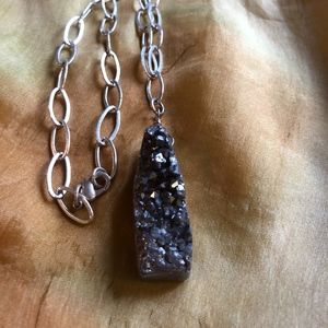Chunky teardrop shaped statement necklace. The chain is about 18", the stone about another 2"