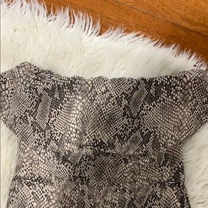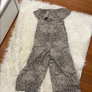 Snakeskin jumpsuit worn one time with ruffle on top cropped legs, zipper in back!!!