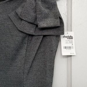Gray dress NWT from Charlotte Russe. Size small. Bow detail on left shoulder and has pockets!