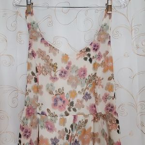 Beautiful Floral Sundress with double straps. Dress is fully lined. Perfect for a Summer party on on the beach. Dress possibly could have been altered not sure. Measurements are below. Dress is in excellent condition.