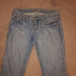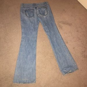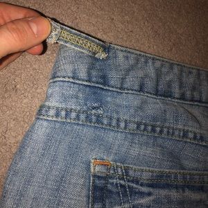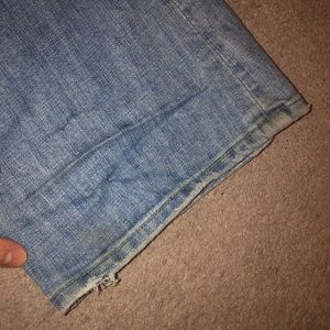 One of the belt loops pulled off as shown in pictures & bottom has very slight wear cause jeans are long. Overall good condition
