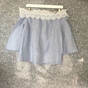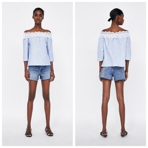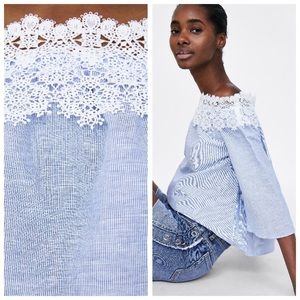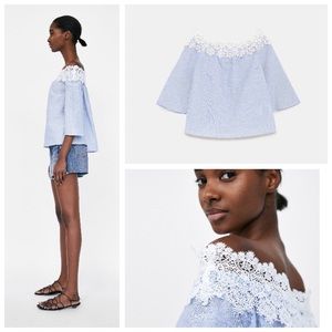 NWOT Zara Contrast Lace Stripe Off Shoulder Top -S