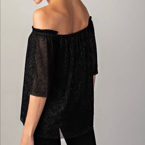 Black Metallic Pleated Off Shoulder Top