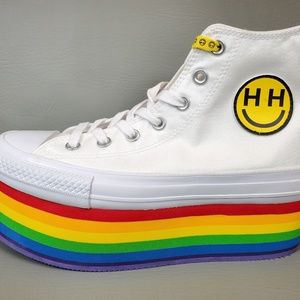 Converse x Miley Cyrus Pride Rainbow Platform Sneakers.