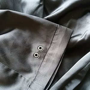 Silky 97% Polyester. Has pockets!! Looks cute tied up and gives it a slight different look. Has little metal gromets near bottom of dress as an omage to the converse shoes, as it is made by converse company. Even has One Star lable on the back. If you look very close the gromets actually say One Star. Slight Wear. TrueSize