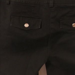 Awesome black, cuffed pants with silver buttons & flapped back pockets, 22” inseam, in perfect condition