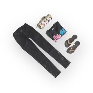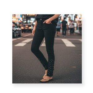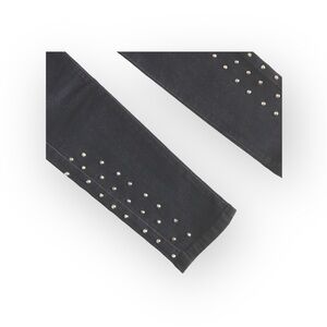 Stunning skinny jeans feature a lowrise, stovepipe skinny fit in a deep dark wash with cute silver studs. These super duper skinnys have faux front pockets. Comfy and sexy 𖦹