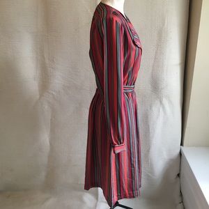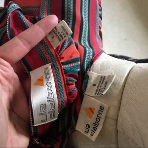 Jacket top & full skirt w matching stripe print - mix up or wear together. multi-way blouse has double button at waist & top button or wear open as kimono type jacket. Light dry poly. Retro chic for office holiday parties or valentine’s day!