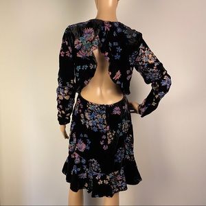 NEW REBECCA MINKOFF LONG SLEEVE FLORAL VELVET CUT OUT MINI DRESS