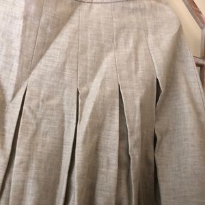 This is a chic khaki/tan colored A line pleated skirt from Oscar de la Renta. It’s a mix of cotton and linen with zip on the side. Unlined