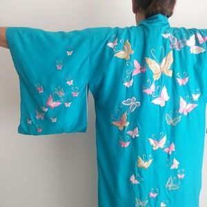 Amazing Vintage 50s embroidered butterfly kimono robe
