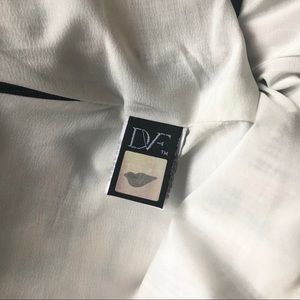 DVF Diane Von Furstenberg polka dot tweed Nelly skirt in great condition. DVF skirt in peach, white, navy, and black, pockets, hidden side zip, fully lined, no stretch. Measurements are: 16 inches at waist and 15 inches from top of waist to hem. Please note a two thread snag in back right side; pictured best as possible but due to the pattern isn’t noticeable worn. It is not running and stops at hem. Doesn’t affect look or wearability and it will not run, but is priced accordingly. Size 8.