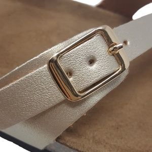Gold Faux Leather Toe Wrap Birk Buckle Sandals