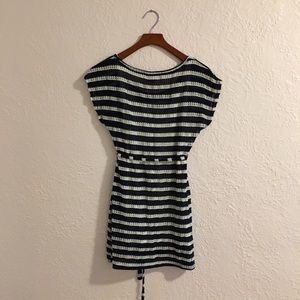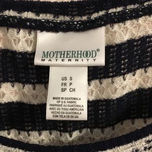 Blue and white striped open knit maternity tunic. Lined. Ties under the bust. EUC
