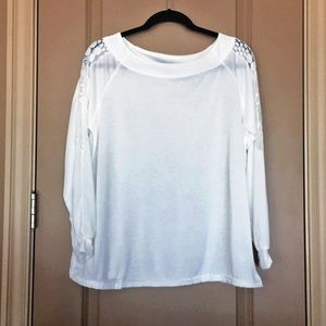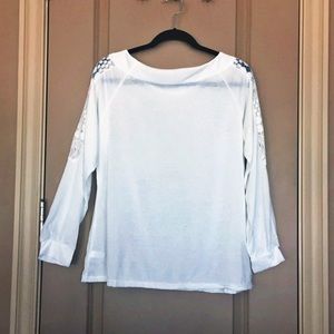 White Long Sleeve Lace Cutout Tee