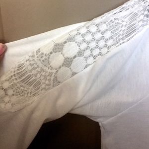 Lace detail cutout from shoulder to elbows on outside of shirt
