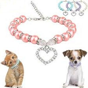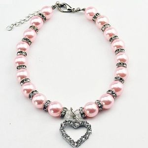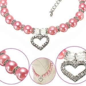 Because fabulousness shouldn't be left only for walks, this Crystal and pink faux Pearl Heart Collar should be the staple Accessory for your fashionable furry friend.