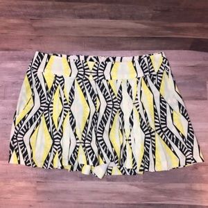 GreylinGreylin shorts in yellow, black, and a very faint aqua color. Pleating detail front and back. Slash pockets. Size XS. Approximate flat lay measurements: 14 inches at waist 9.75 inch rise 2.5 inch inseam ♻️