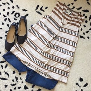 This flowy tank is great for work or play. The combination of the cream, brown and black can be dressed up or down. Listed as a small, this tank is on the larger size and could easily fit a medium. It is rather long, measuring 28 inches long. It is from the Deletta line of Anthropologie.