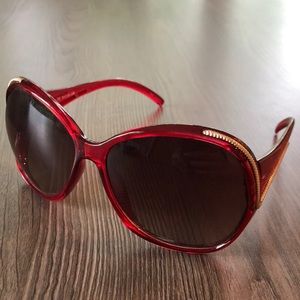 Gorgeous Adrienne Vittadini Sunglasses in red plastic frame with gold accent. Original and stylishly designed to dress up your day outfits or stand out at day parties and events.