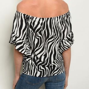 5⭐️BLACK WHITE ANIMAL PRINT OFF SHOULDER - Top