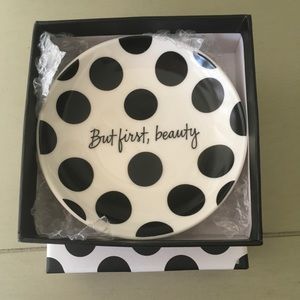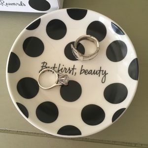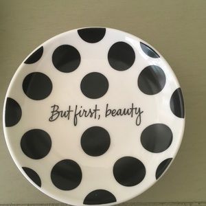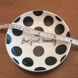 4” Round jewelry and/or Trinket Dish It’s Writing “BUT FIRST, BEAUTY”