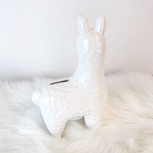 This cute little llama coin bank is ready to catch all the coins out of your wallet and pockets. Measures around 7" tall. Brand new.
