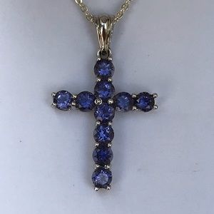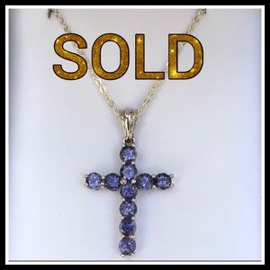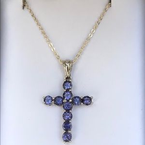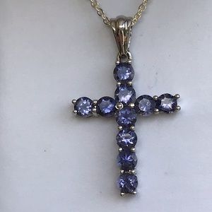 Gorgeous natural tanzanite gemstones and simply beautiful. There are a total of 10 round faceted tanzanite stones and it is set in 925. It lays beautifully on an 18” chain and it is hallmarked 925 TGGC. It is in perfect condition