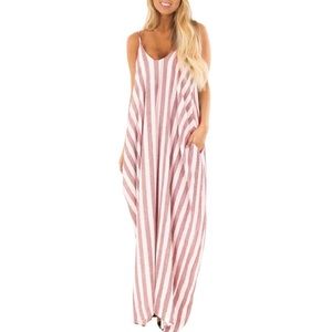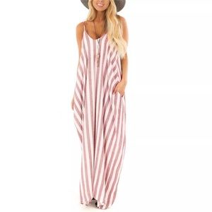 New!! Tessa Pink Striped Maxi Dress