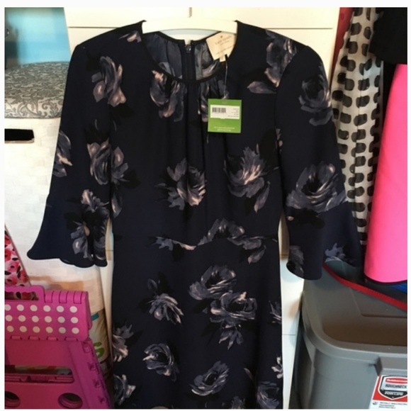 brand new with tags size 6 kate spade night rose crepe dress gorgeous! FEATURES 100% polyester 3/4 length flounce sleeves crew neck relaxed fit bodice circular cut skirt fit and flare dress size 4 measures 36.5" long from highest shoulder point DETAILS center back zipper dry clean only happy to bundle and discount so check my closet for tons of kate spade items for sale! offers welcome so dont be shy! :D
