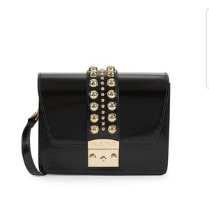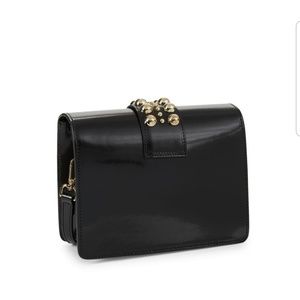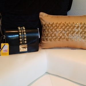 Mario Valentino Genuine Leather, Black & Goldtone Hardware. With Flap Pushlock Closure. Made in Italy..