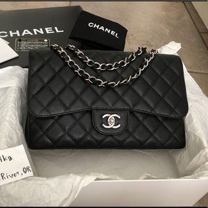 Black Caviar Jumbo Single in excellent condition. Very good shape. Caviar still tight. Very light signs of use. Faint hairlines on hardware (barely see). Clean inside out. Condition as per photos and video.