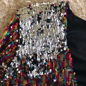 Zara rainbow/silver sequin shift dress. Awesome sexy & comfortable party dress. Rainbow sequin on one side and when sequins brushed the other way they are silver.