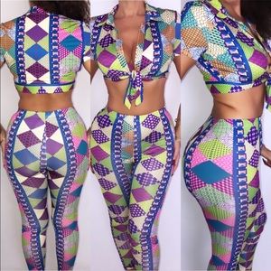 Brand New! Vibrant Vibes Set 💕. 2 Pieces Top and Leggings will also look great worn separately. S.M.L.