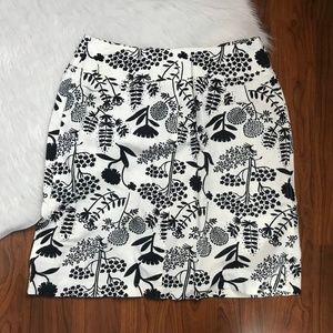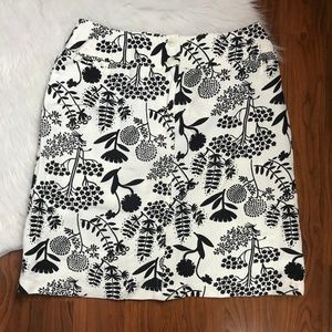 Harve Benard Womens Linen Rayon Skirt 10 Black White Floral Pencil Zip Front