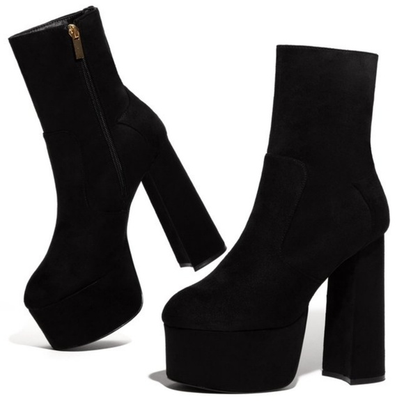 These lovely booties feature a round toe silhouette, chunky platform heel, lightly cushioned insole, and side zipper closure.
