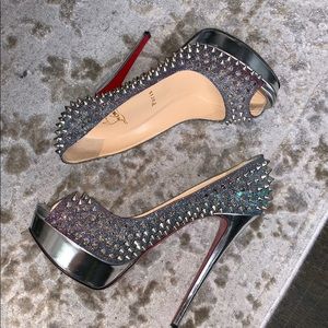 Christian Louboutin Lady Peep Spike Silver SZ 38.5