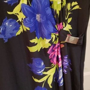 Ashley Stewart black and floral multi colored asymmetric top. Silver buckle at the side. Size 18/20 has a stretch to it. Worn once