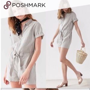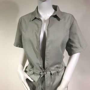 Short Sleeve Utility Coverall Romper Front Zip