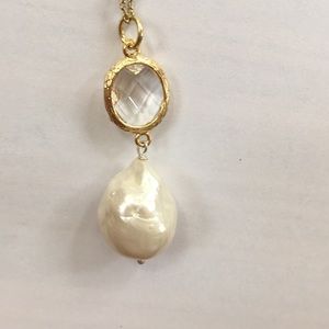 Lucky Brand necklace, gold tones, faux pear is irregular on backside as shown in above photo, approximately 10” length