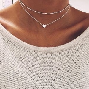 (Last1) Double Heart Layered Necklace/Choker Super