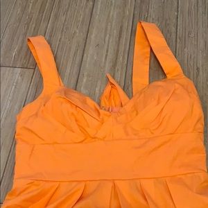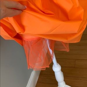 Beautiful formal dress from city triangles. Nice bright orange color. Never worn! NWOT! Built in bra. Orange taffeta under skirt offers a fun little pouf at the hemline. Ties in the back. Dress is 97% cotton 3% spandex. Lining is 100% polyester. Shoes and bag sold separately:)