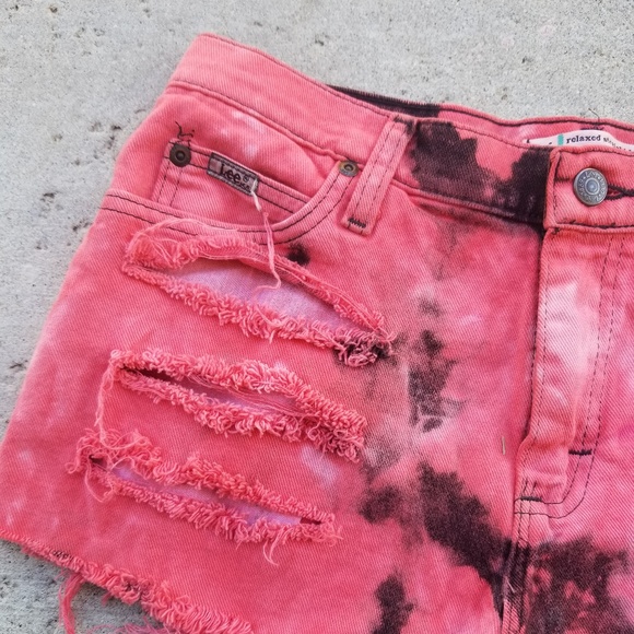 Lee Red Cut off Distressed Tie Dye Denim Shorts