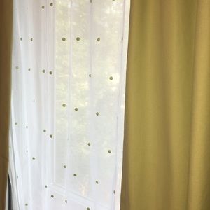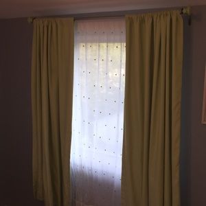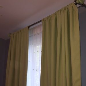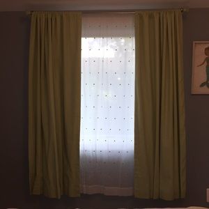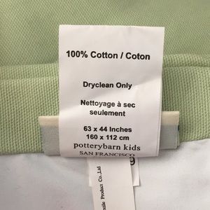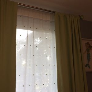 Pottery Barn Kids green window panels with blackout liner, 100% cotton. No rips or stains, but some sun fading on the side of the panel. First picture is best representation of the color. Price is for a pair of 2 panels.