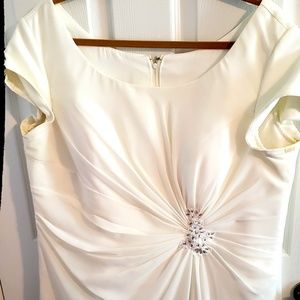 Worn once. Size 18 no tag in it. Do not recall brand. Very flowy and pretty. Two tiny specks on waist that can easily be concealed.